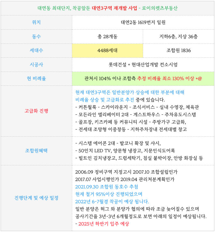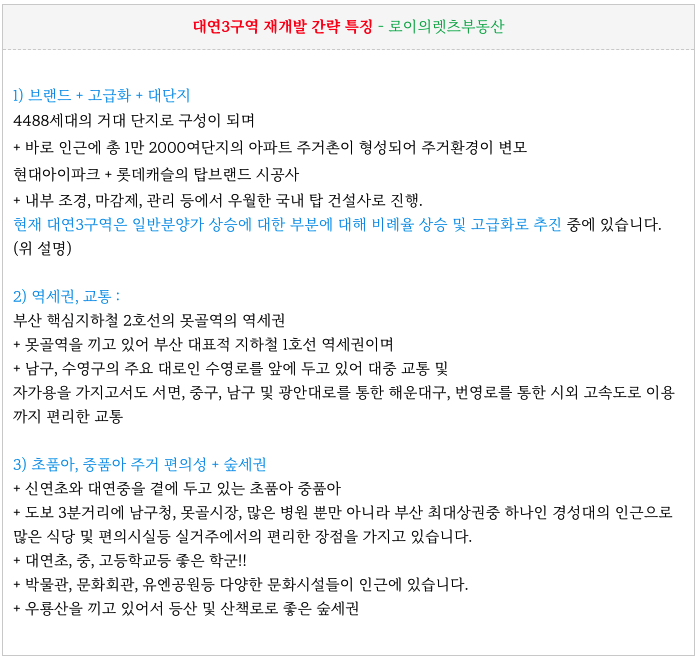 대연3구역 재개발 간략한 특징 정리 해드립니다.