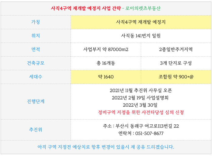 사직4구역 재개발 예정지의 노후도 및 추가적인 정보는 아래 페이지를 참고 부탁드립니다.