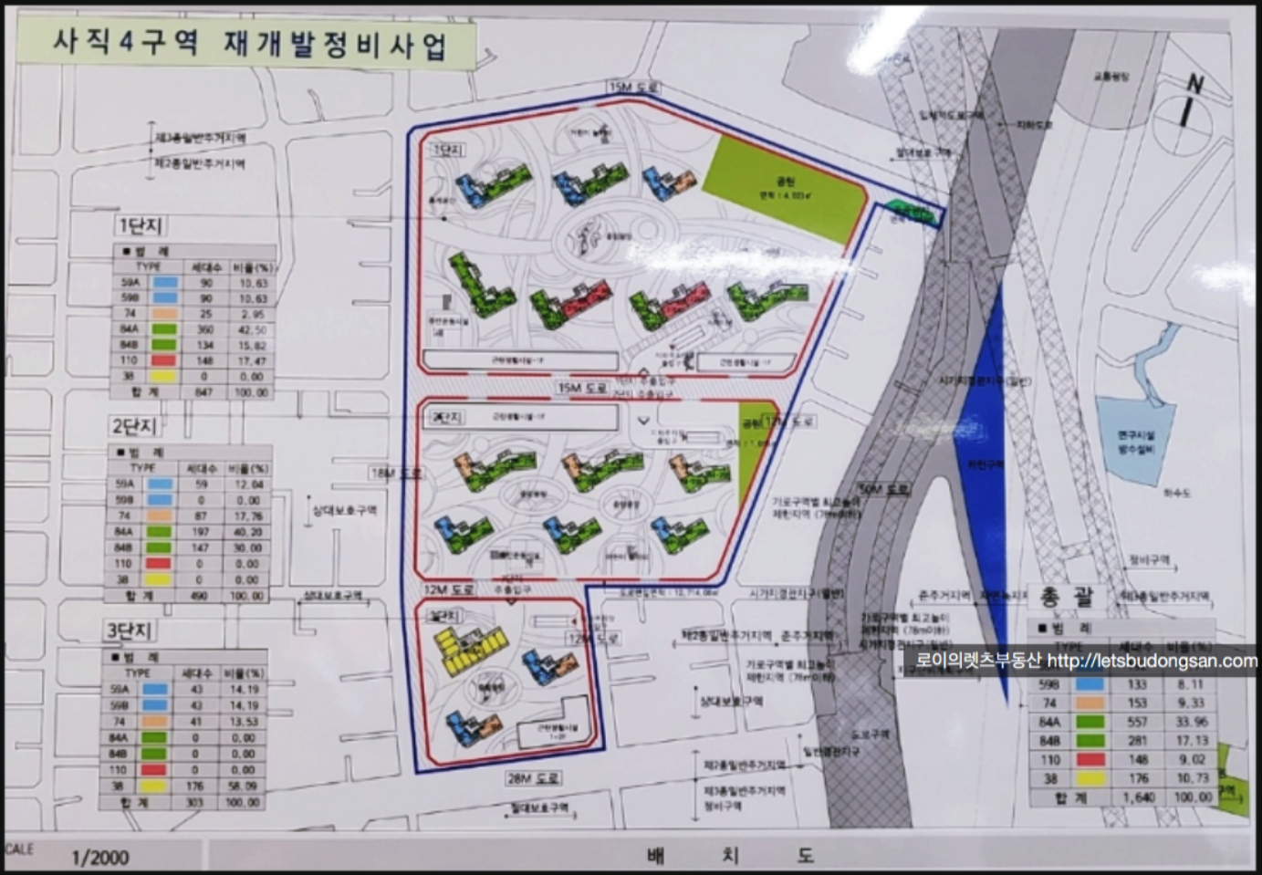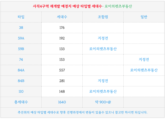 사직4구역 재개발의 현재 예상 타입별 세대수 입니다.