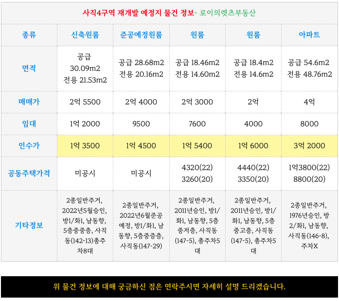 사타 신청된 사직4구역 재개발 예정지의 현 소액 인수가 매물들을 소개해 드리겠습니다.