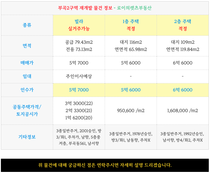 부곡2구역 재개발 현재 가능한 괜찮은 물건업데이트 해드리겠습니다.