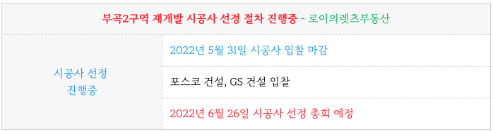부곡2구역 재개발의 6월 26일 시공사 선정 총회를 앞두고 있습니다.