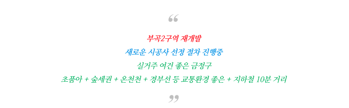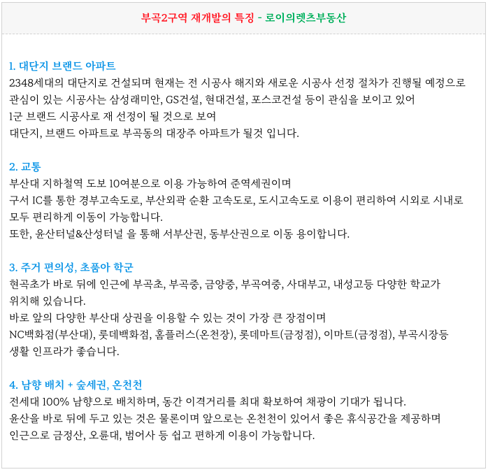 부곡2구역 재개발의 특징을 다시 한번 간략히 정리해 드립니다.