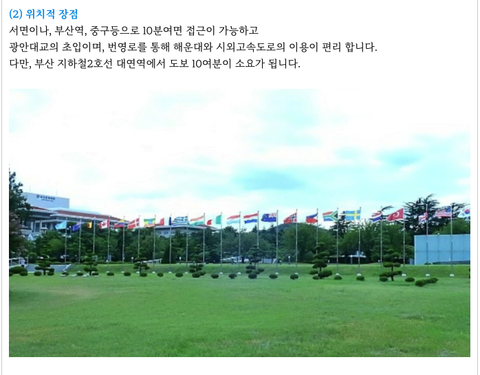 주변에 유엔공원, 부산박물관, 부산문화회관등 좋은 녹지, 문화 공간들이 있다는 큰 장점을 가지고 있습니다.