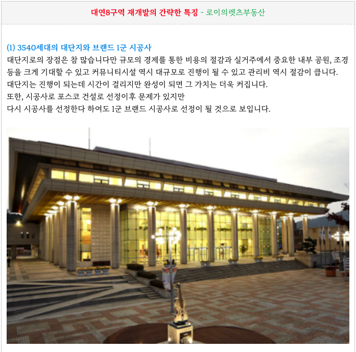 대연8구역은 현재 구역지정 후 진행되고 있는 대연동의 대단지 알짜 재개발이다 보니