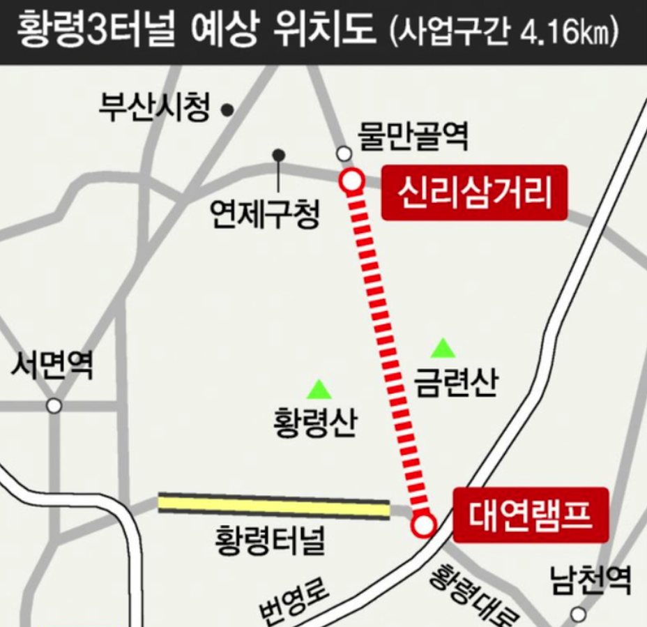 현재 황령3터널이 예타대상이 되어 대연동에서 연산동으로 이어지는 터널이 개통이 되면