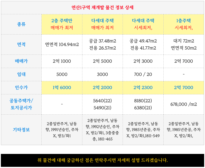 연산1구역 재개발 예정지 괜찮은 물건 소개 하여 드리겠습니다.