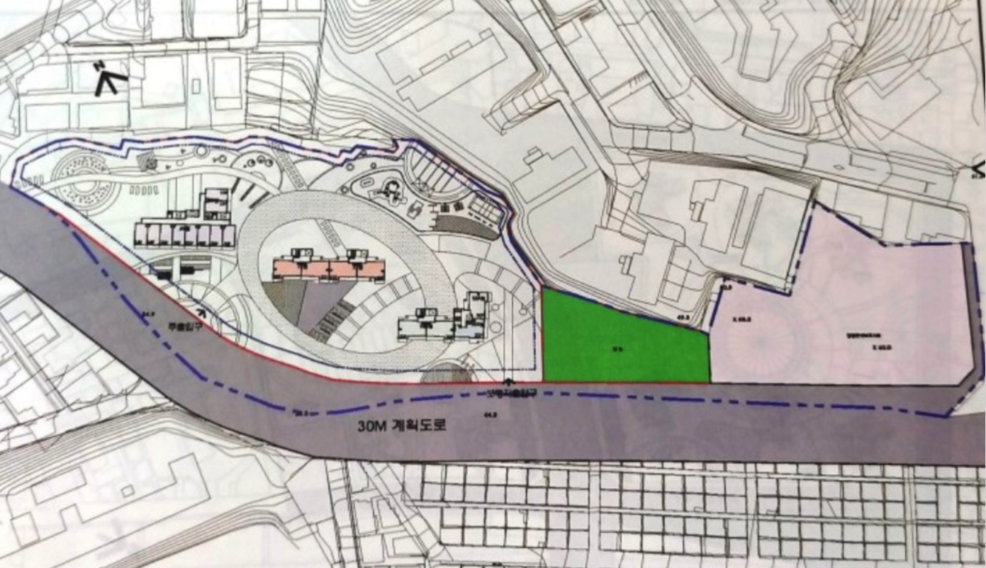 전 시공사의 제안에도 3구역쪽으로 배치되는 타입은 임대동과 59타입 일부만 배치가 되었습니다.