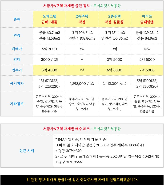 서금사A구역 재개발 급매 물건 정보를 먼저 업데이트 해 드립니다