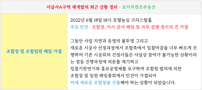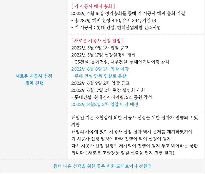 새로운 시공사선정절차 진행중에 조합장 및 임원이 모두 해임이 됨에 따라