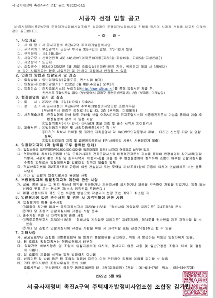 (A급 입지) 서금사A구역 재개발 : 급매 매물 & 진행상황 ( 시공사재선정, 조합장해임 ) 체크