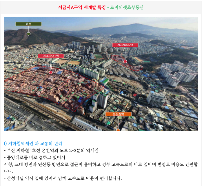 서금사1구역과 3구역은 하로 통합이 서금사A구역이 되었고 현재의 물건이 어느 위치에 있더라도 상관 없이