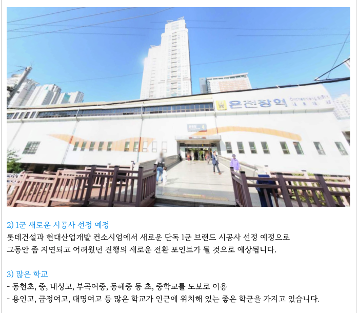 부산 핵심 지하철1호선 역세권 + 평지 + 온천천 을 앞에 끼고 있으며