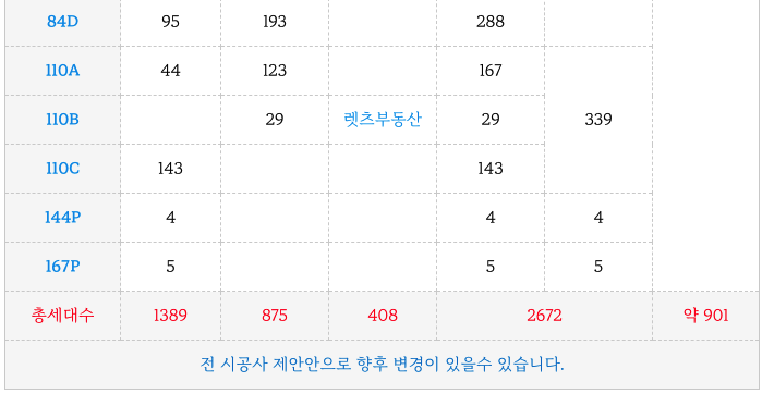 향후 선택하시는 평형 타입 선정하시고 그 타입이 위치한 동의 위치에 따라 결정이 될 뿐입니다.