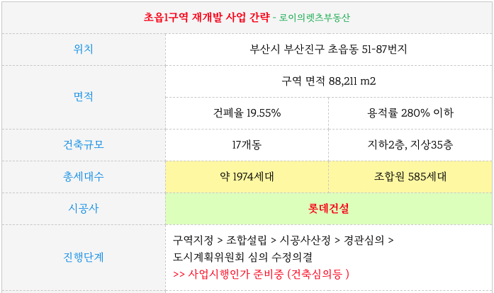 초읍1구역 재개발 : 진행 체크 & 시세 최저 임대맞춘 공동주택 매물