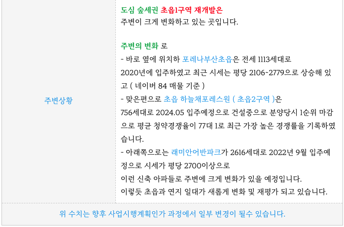도심 숲세권 초읍1구역 재개발의 물건등을 정보부터 업데이트 하여 드리겠습니다.