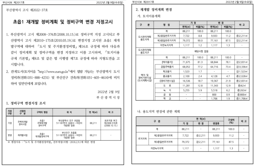금번에 정비구역 지정 변경 고시까지 완료가 되었습니다.
