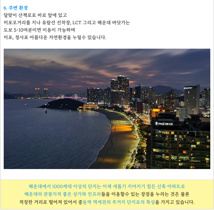 해운대의 관광지적 좋은 상가와 인프라들을 이용할수 있는 장점을 누리는 것은