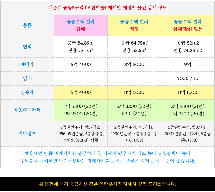 해운대 중동5구역 (오산마을) 재개발 의 급매 물건 정보를 소개해 드립니다.