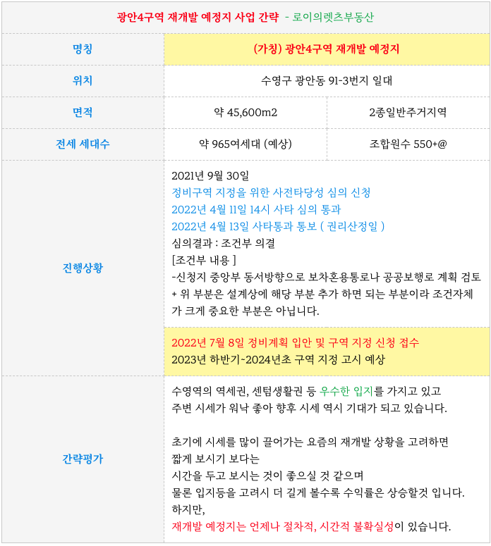 구역지정신청한 광안4구역 재개발 소식과 작은 물건