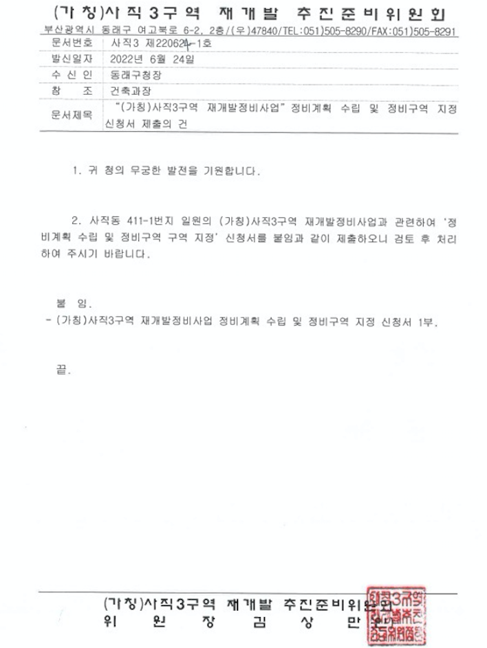 사타 통과에 이어 정비계획 수립 및 정비구역 신청 접수가 이루어진 부분입니다.