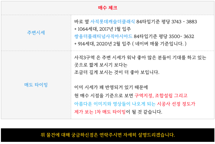 당연히도 사직3은 좋은 입지와 시세를 가지고 있습니다.