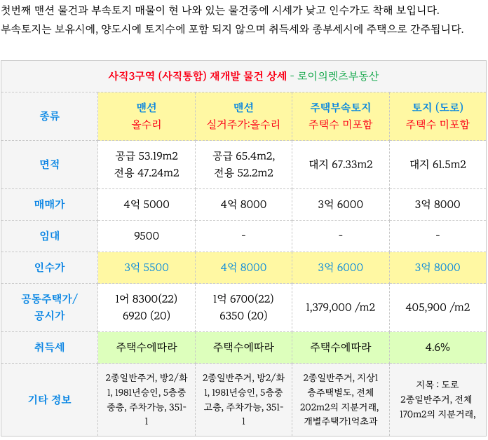 사직3구역 (사직통합) 재개발 예정지 현 가능한 괜찮은 물건 소개해 드리겠습니다.
