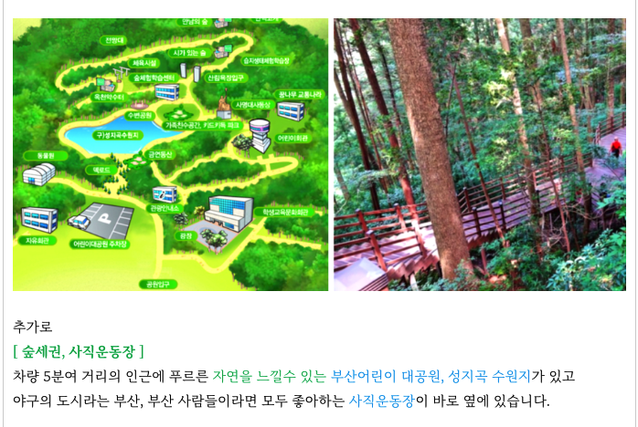인근에 초읍 성지곡수원지, 어린이 대공원이 차량 5분여 거리에 위치해 있기도 합니다.