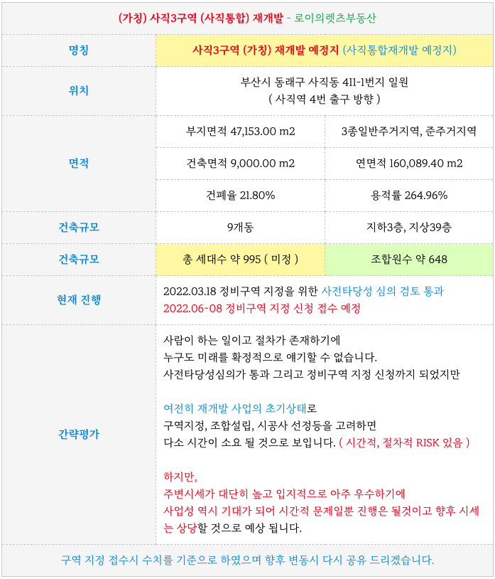 사직3구역 (사직통합) 재개발 최근 진행상황 & 현 최선의 물건들 소개 해 드리겠습니다.