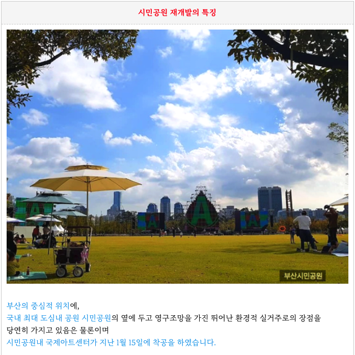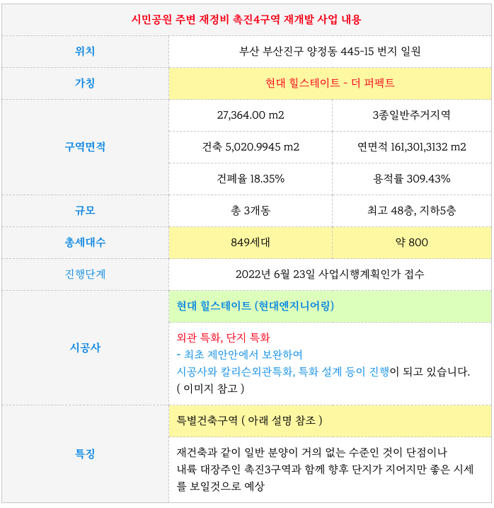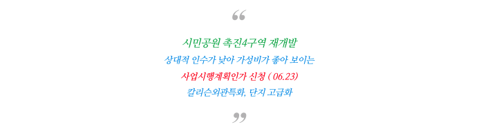 시민공원 촉진4구역의 특징 을 정리해 드립니다.