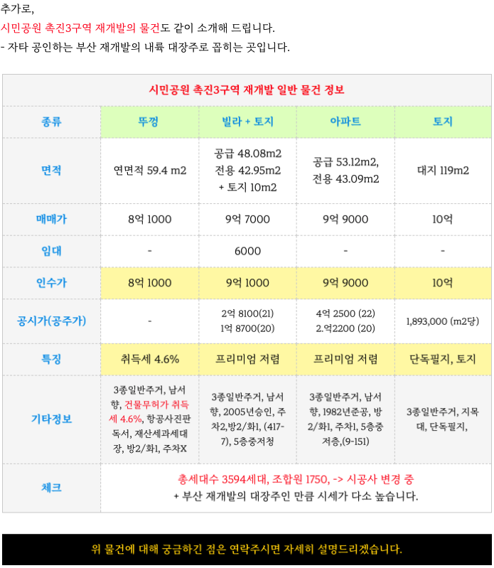 부산 전역 재개발, 재건축, 분양권, 상가, 주택 등 물건 투자 접수 받습니다