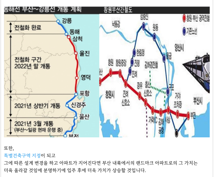 부전역 복합환승센터, 사상~해운대 대심도 등의 개발 호재가 함께 있습니다.