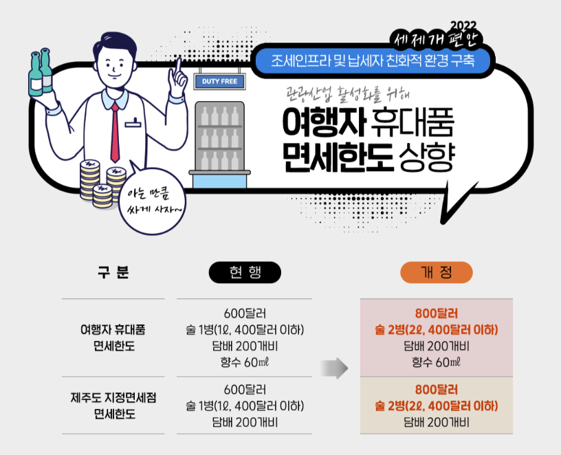 전반적 물가 상승으로 인해 면세 한도가 상향이 되었습니다.