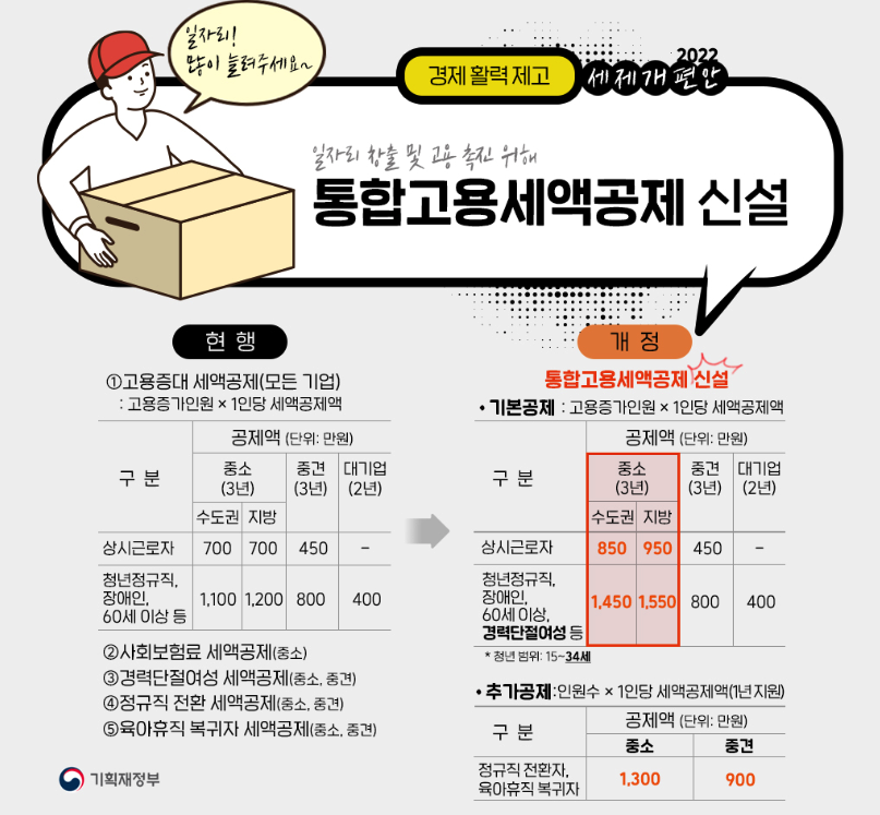 고용을 유도하기 위한 것으로 고용증대의 세액공제 금액이 증액이 되고