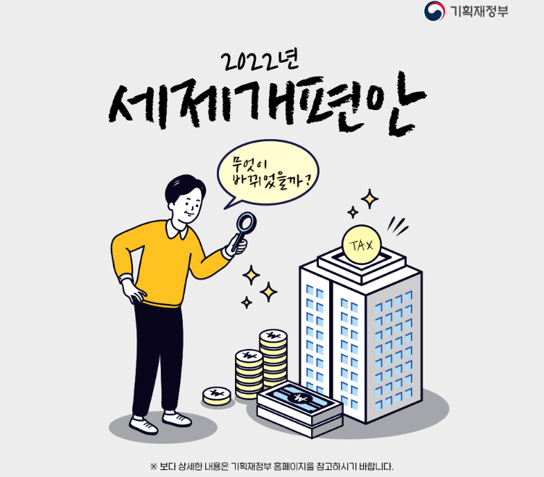 기획재정부에서 발표한 2022년 세제개편안에 대해 간략히 살펴 보겠습니다