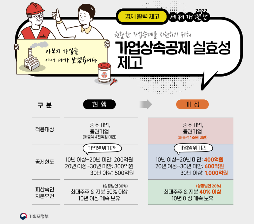 중견 / 중소기업의 상속으로 인한 경영권의 위험을 줄이게 되었습니다.