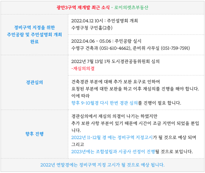 " 광안3구역 재개발 : 진행상황 " & 소액매물