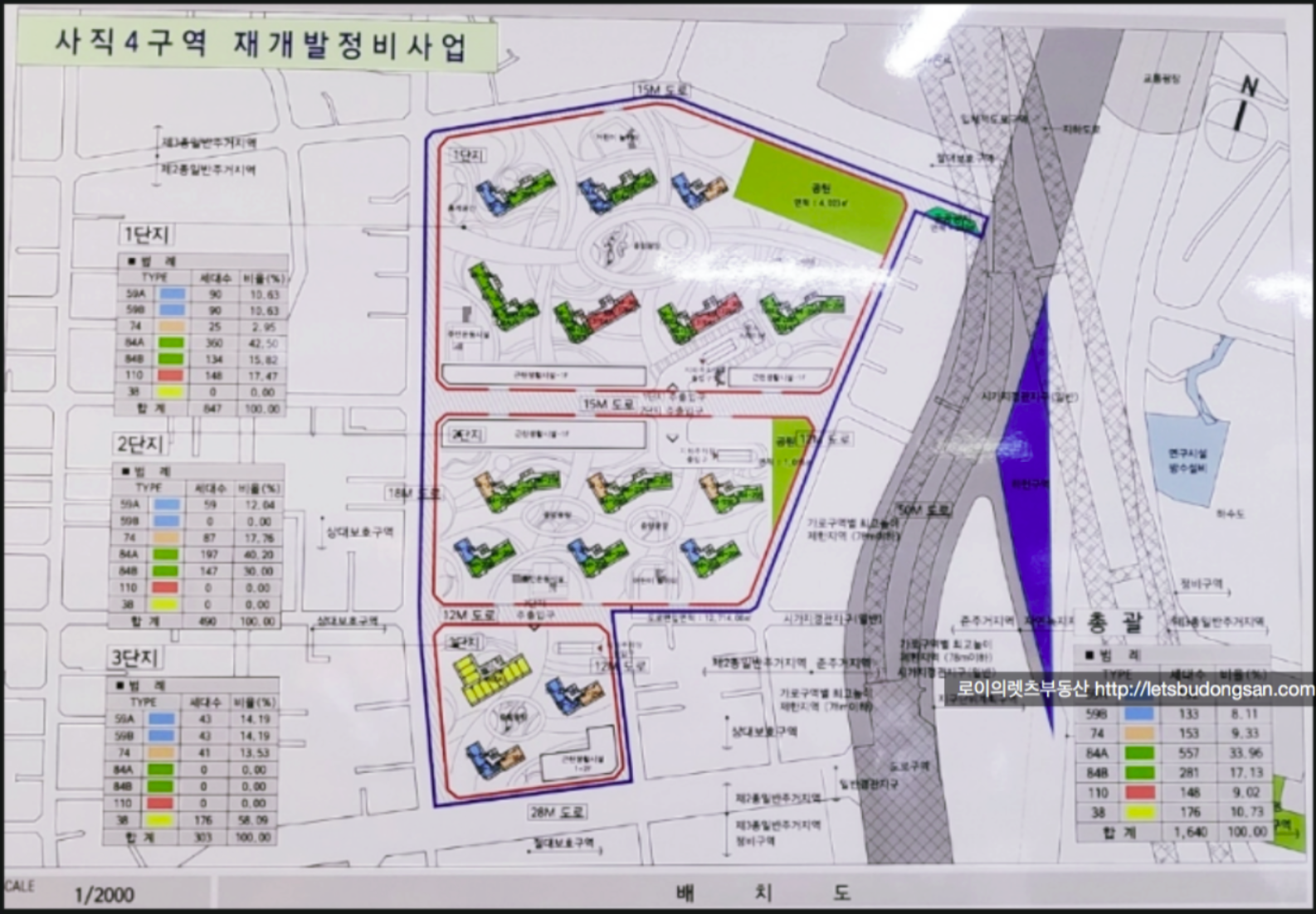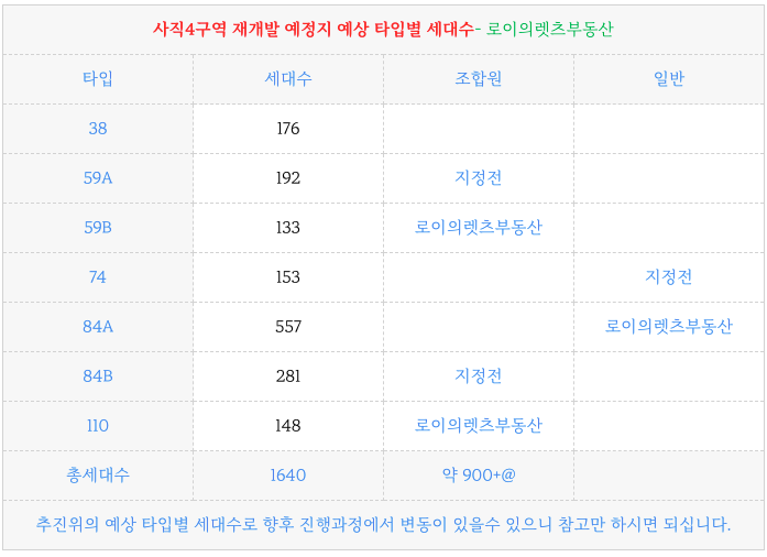 사직4구역 재개발의 현재 예상 타입별 세대수 입니다.