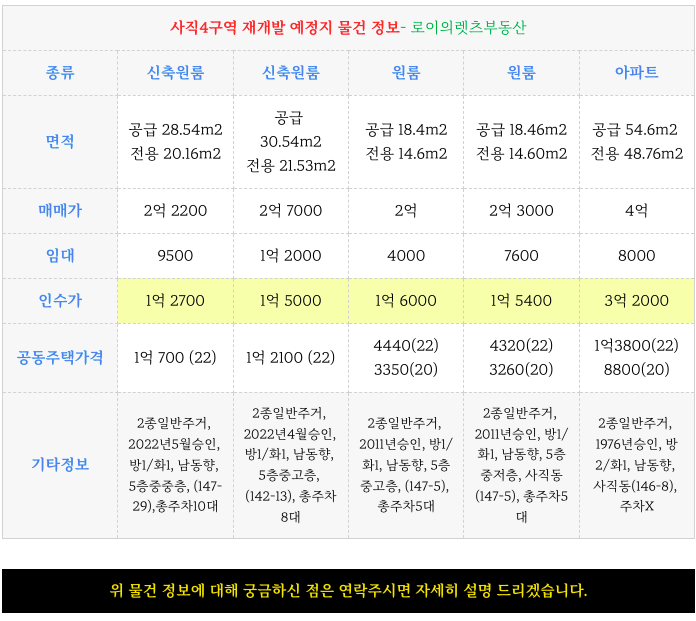 사직4구역 재개발 예정지의 현 소액 인수가 매물들을 소개해 드리겠습니다.