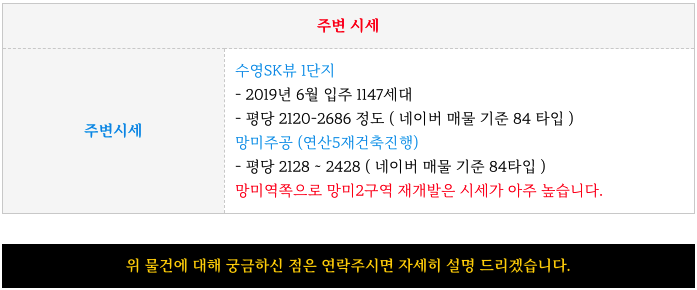 망미5구역 재개발 예정지 물건 정보를 소개 하여 드리겠습니다.