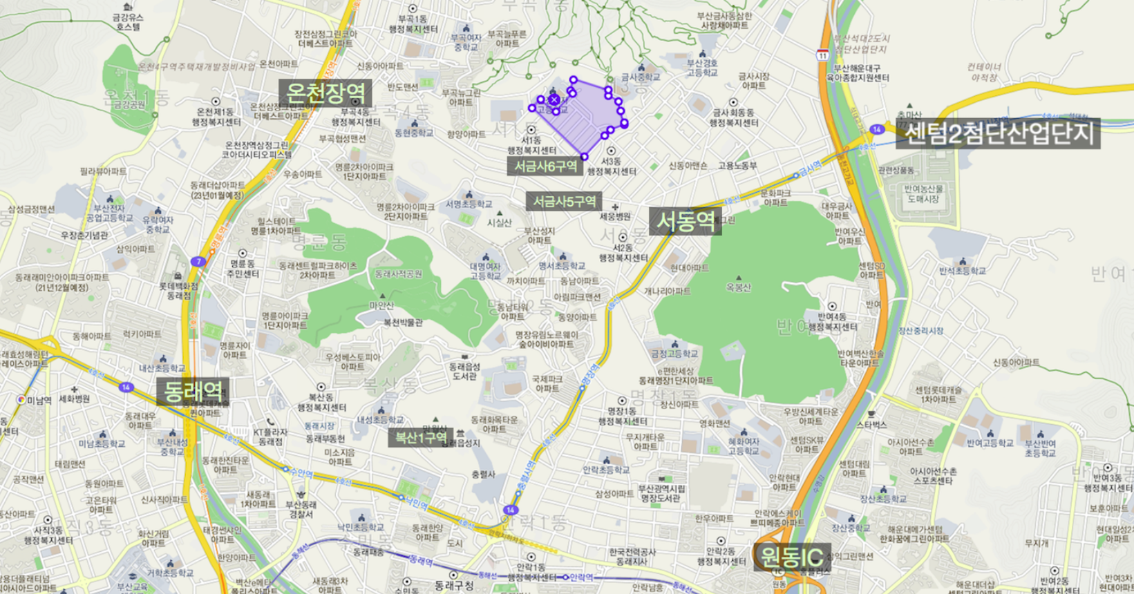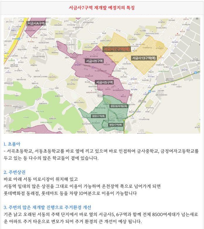 서금사7구역 재개발 예정지의 간략한 특징을 정리 드리겠습니다.
