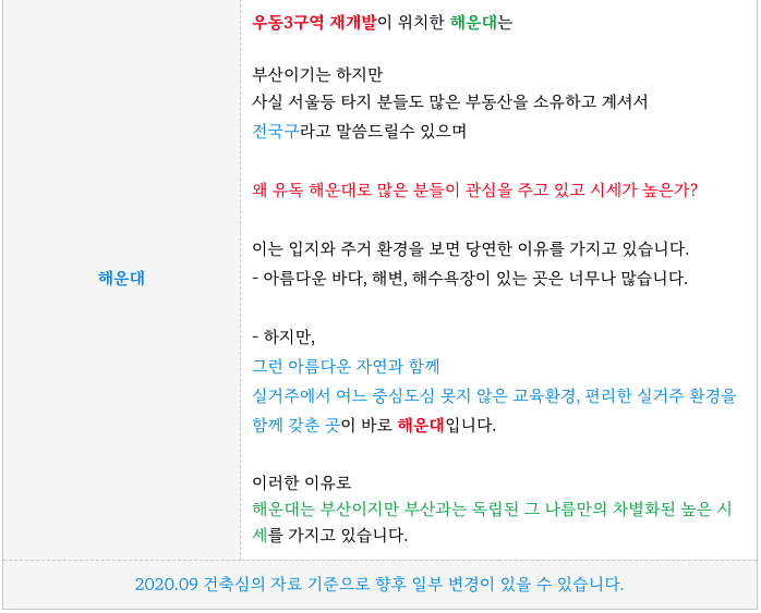 해운대 우동3구역 재개발의 현재까지 진행상황등 추가 정보는 아래 페이지를 참고 부탁드립니다.