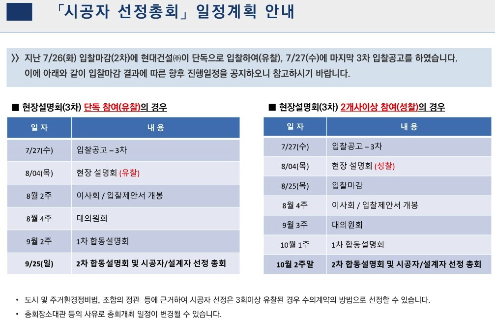 그럼, 시공사 선정 관련 소식과 일정에 이어