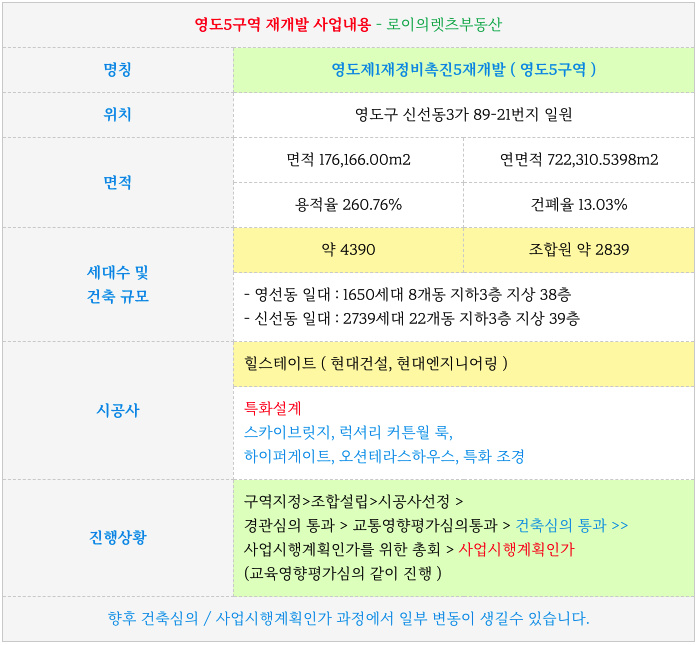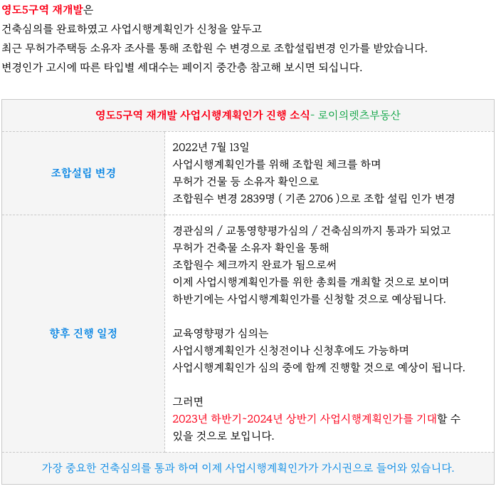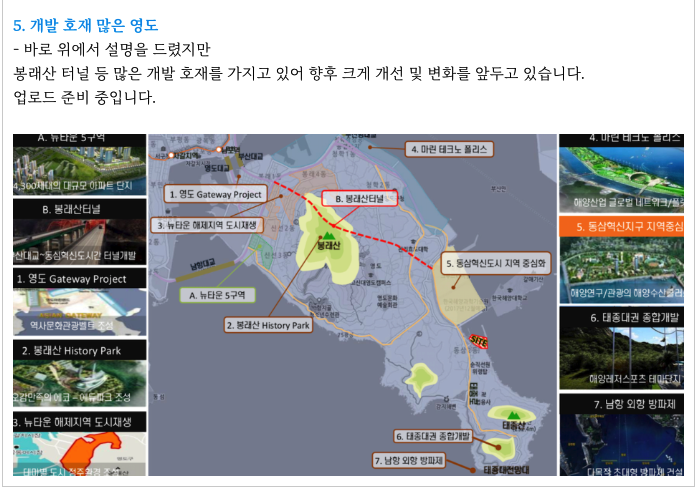 영도5구역 재개발의 진행상황과 향후 예상일정등 추가적인 정보는 아패 페이지를 참고 부탁드립니다.