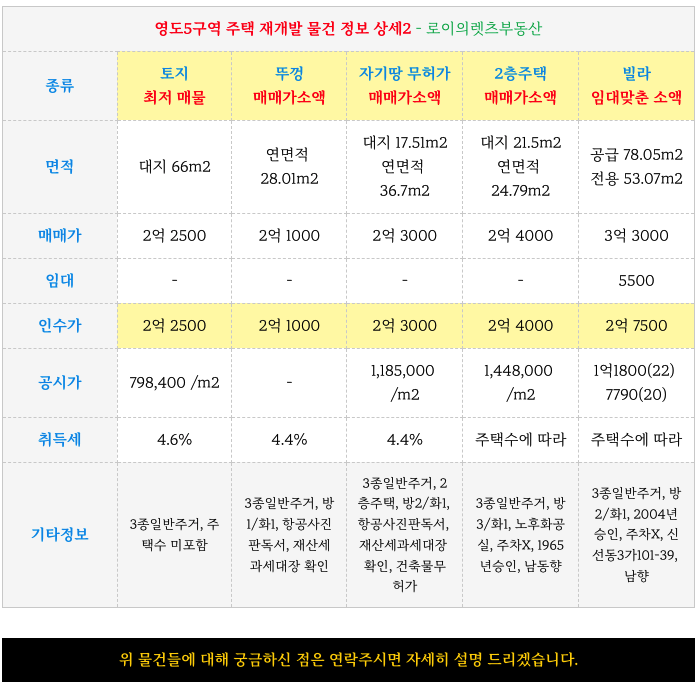 영도5구역 재개발 가격 조정된 소액의 좋은 물건 업데이트 해드리겠습니다.