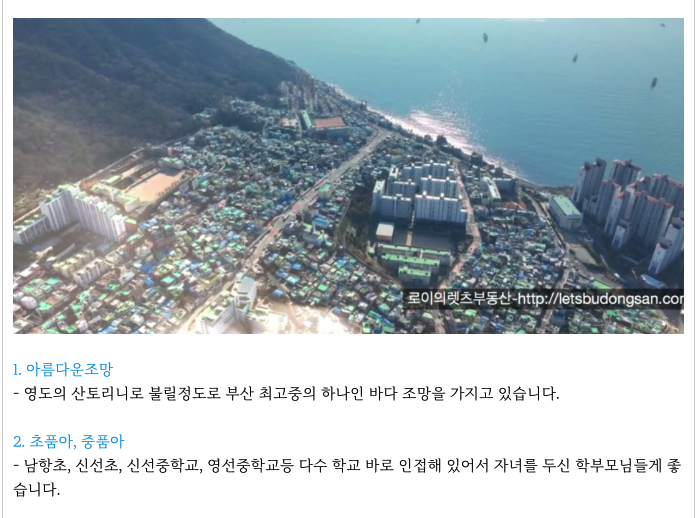 영도5구역은 영도라는 장점과 영도라는 단점을 가지고 있습니다. ( 아래 특징 참조 )