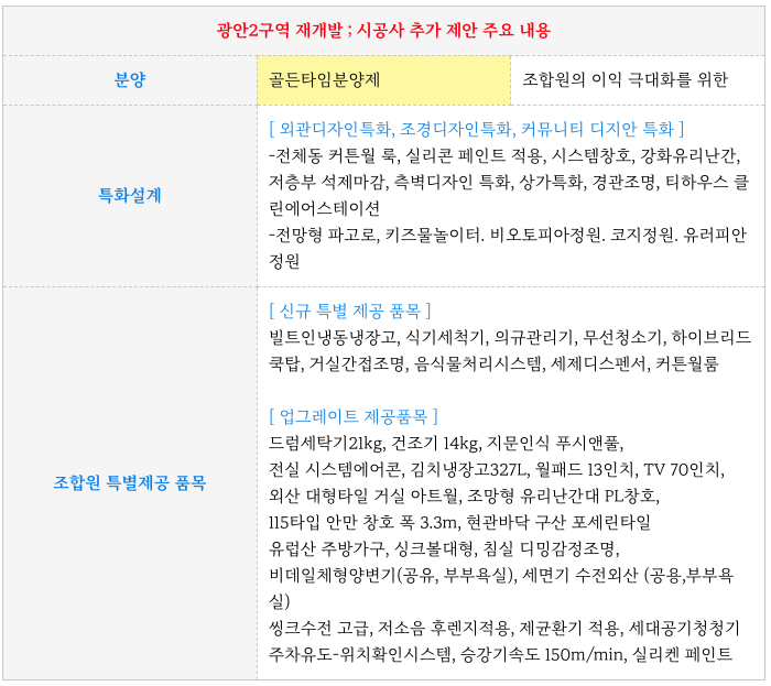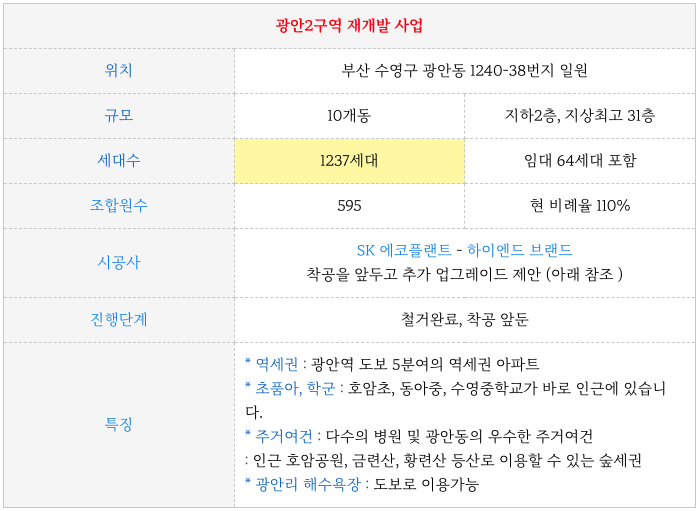 광안2구역 재개발의 시공사 SK 측의 추가 제안 주요 내용 입니다.