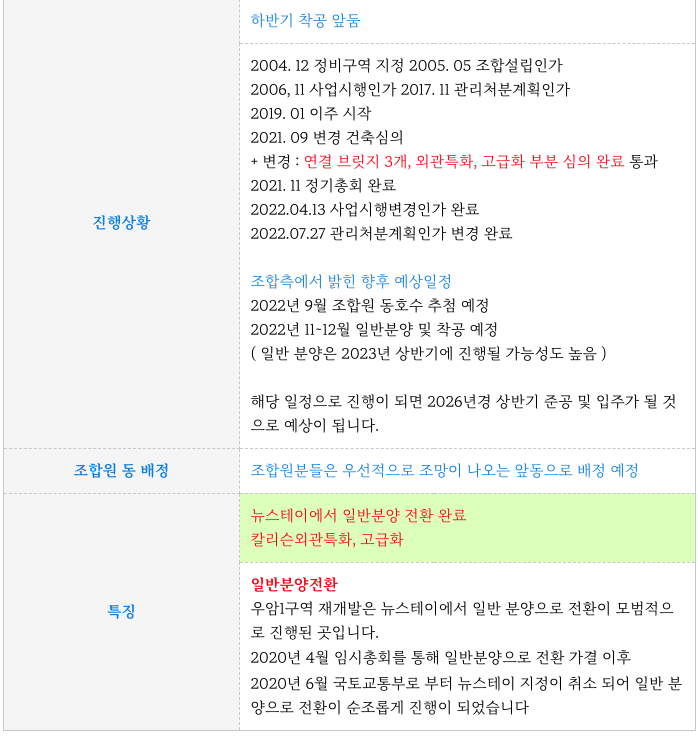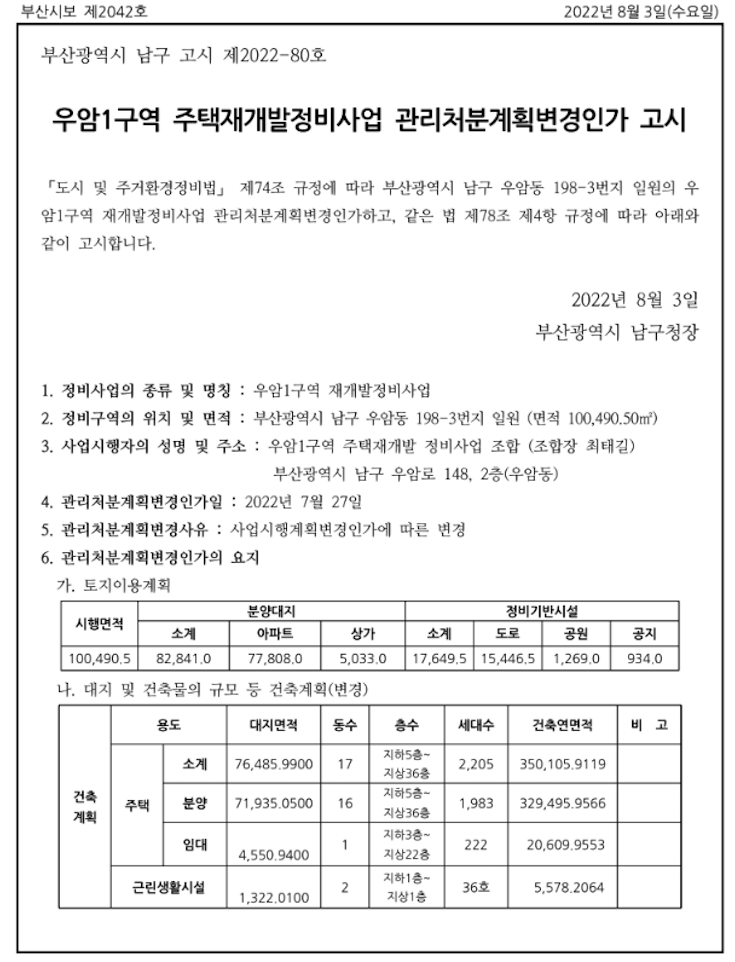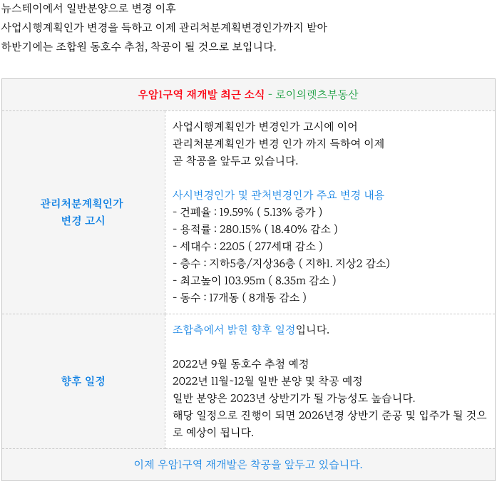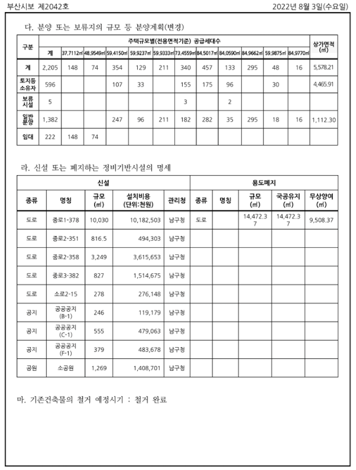 - 아래 수치는 금번 관리처분계획인가 변경부분을 반영한 것으로 최종 수치로 보시면 됩니다.