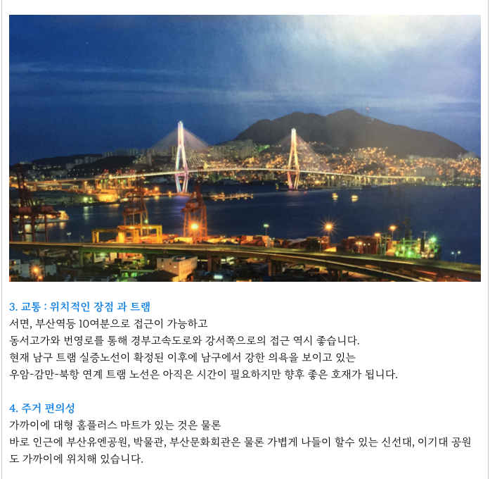 - 교통 : 위치적인 장점 과 트램, 우암해양클라스터
