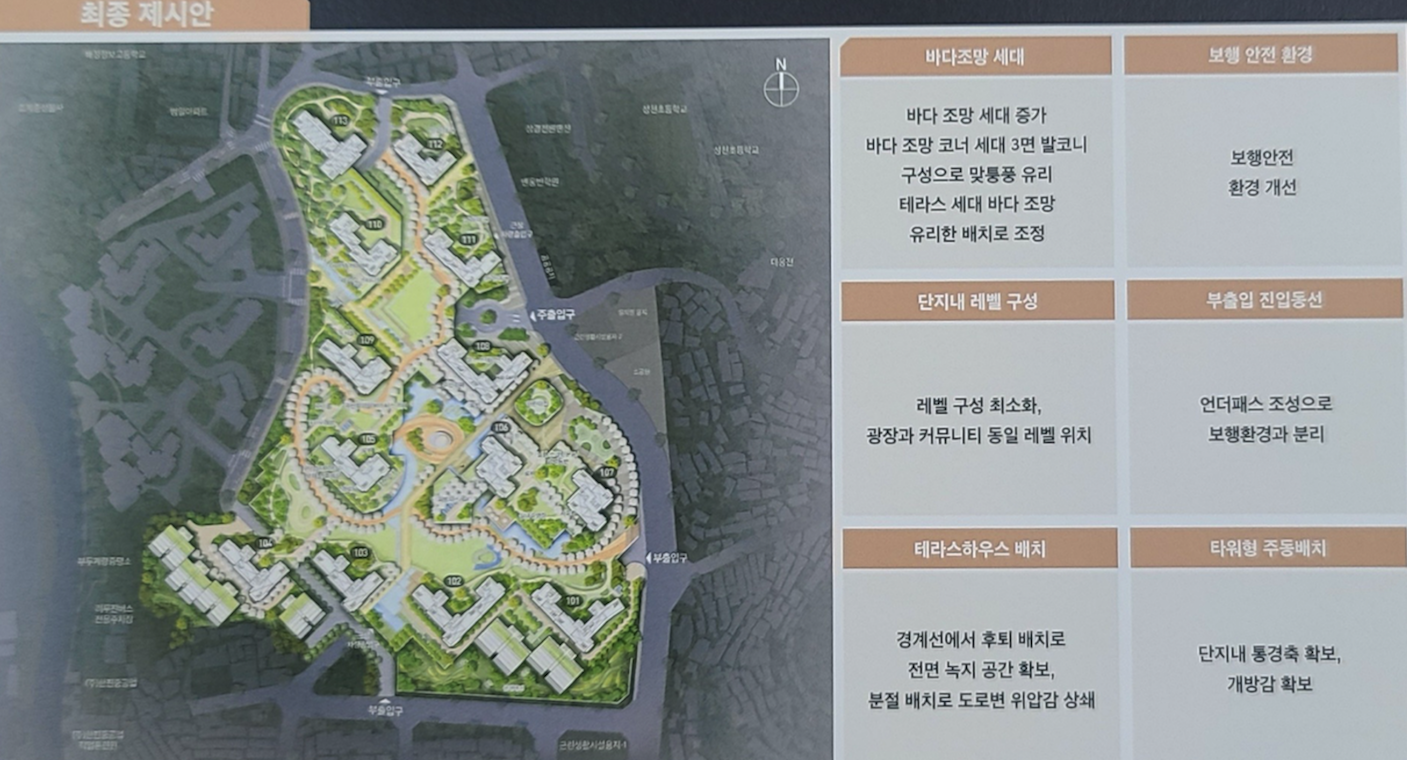 - 조합원 분들은 우선적으로 조망이 나오는 앞동 위주로 배치할 예정이라고 합니다.